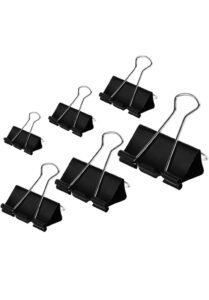 Binder Clips 100 unidades – coofficer papel Binder Clips Pinzas para papel de carta de notas, papel carpeta abrazaderas para suministros de oficina, 6 varios tamaños, color negro